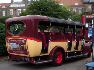 The Town Crier, a beat up VW bug with a loud speaker mounted on it, crisscrosses the streets all day providing the news of the town as well as advertising.